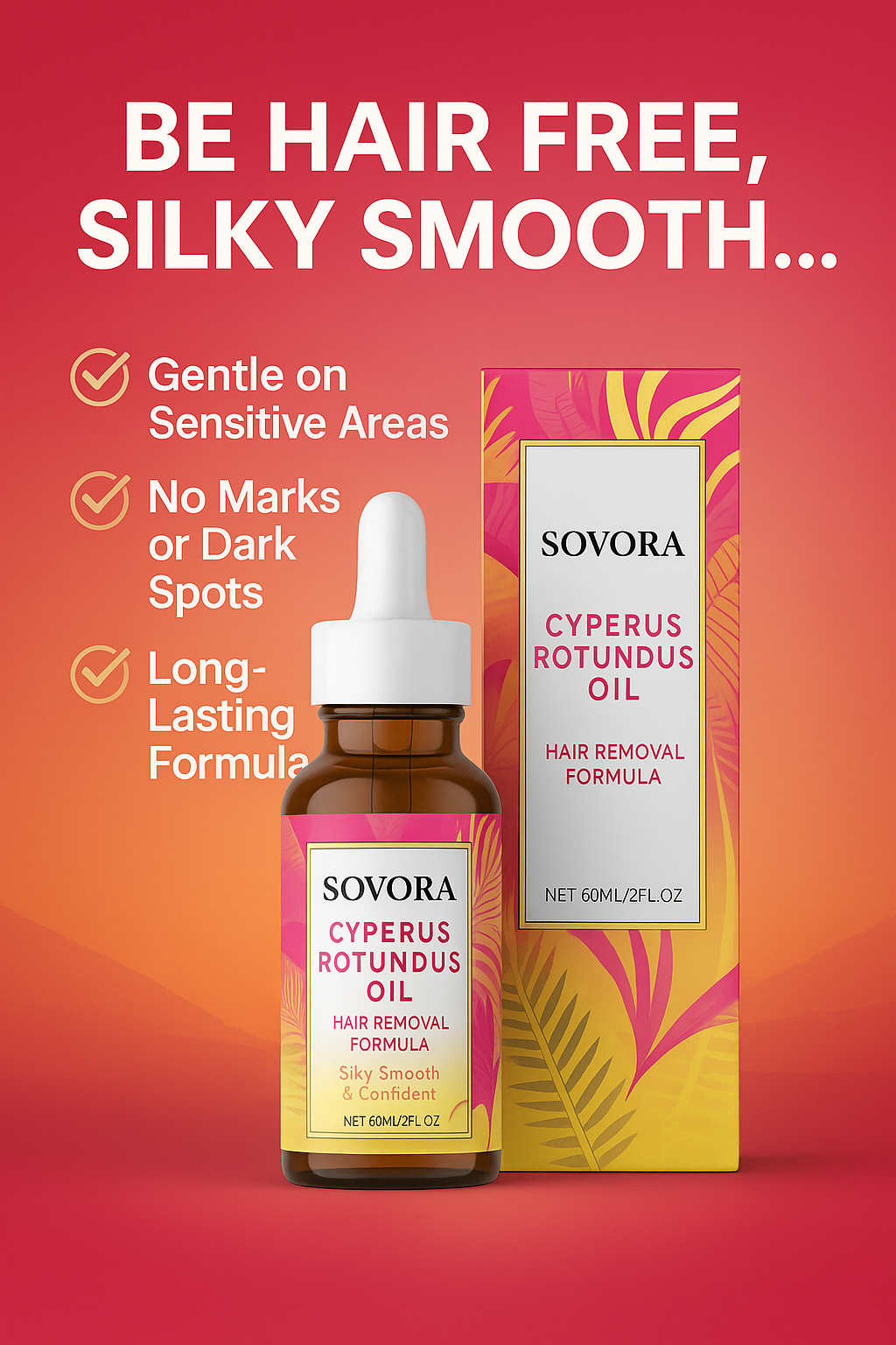Experience luxurious hair removal with our unique oil that not only inhibits hair growth but also deeply nourishes and hydrates your skin for a radiant glow, ensuring gentle care and lasting results compared to competitors.
